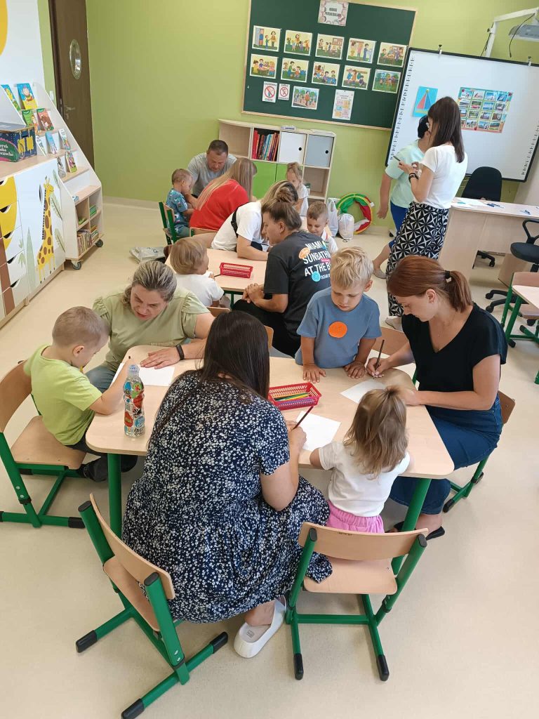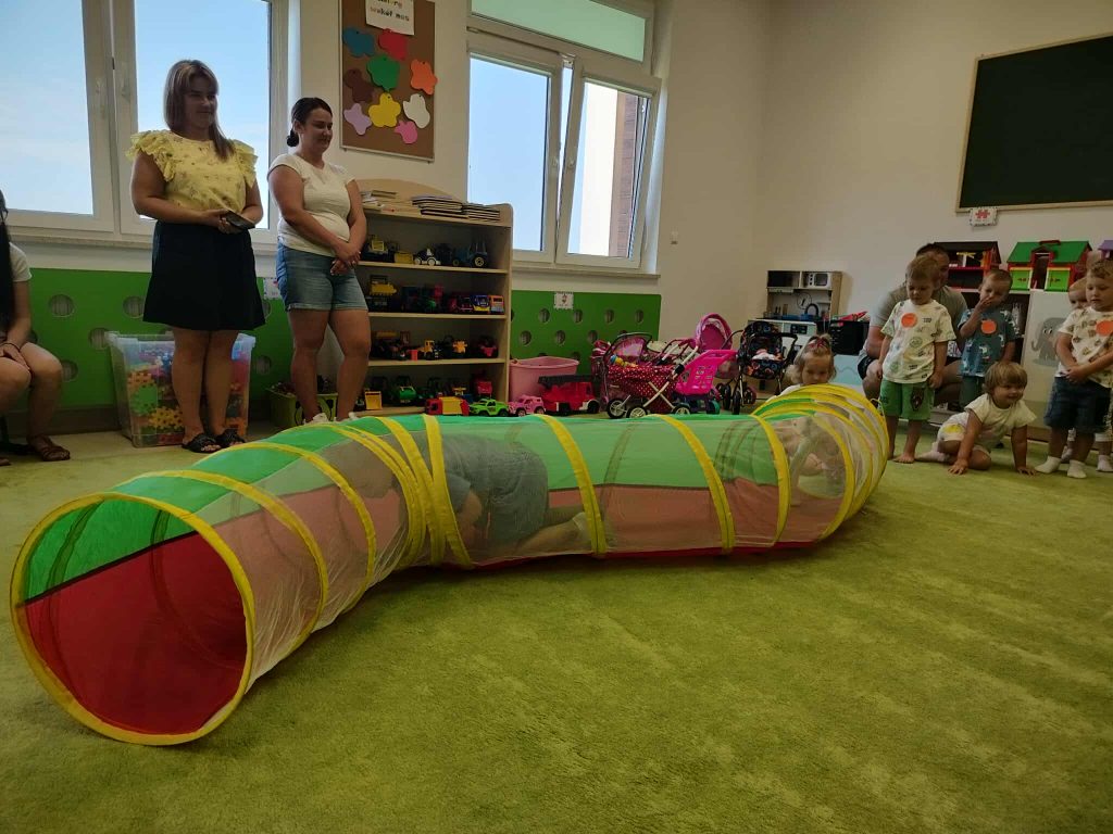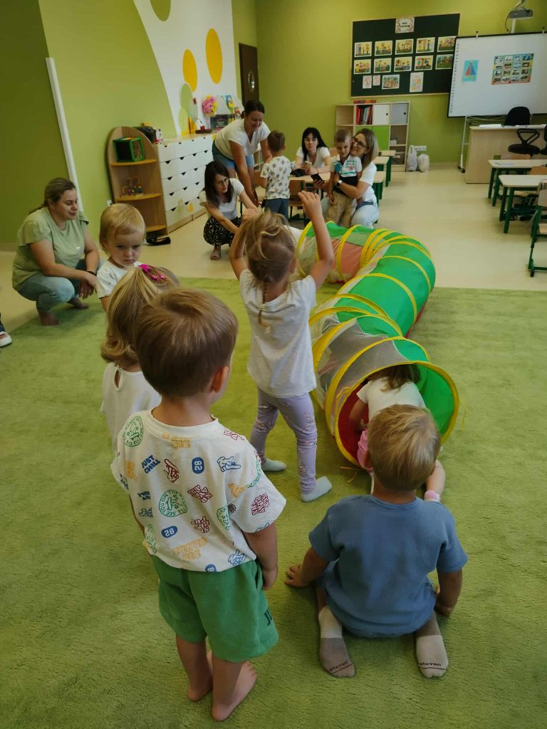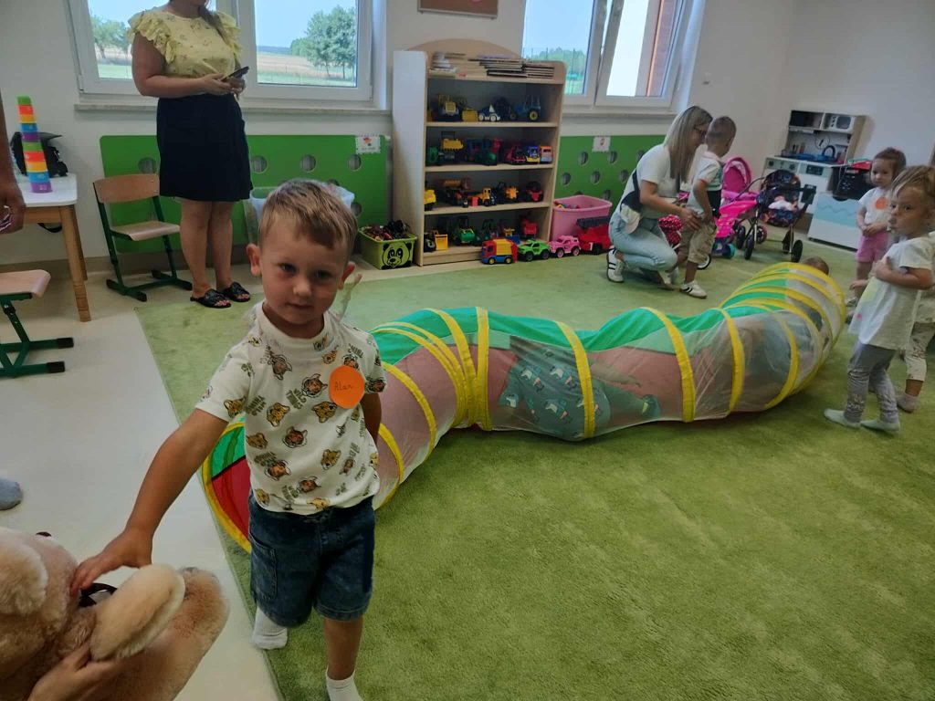 Od samego początku panowała ciepła, przyjazna atmosfera, która sprzyjała nawiązywaniu relacji i integrowaniu nowych osób z naszą społecznością. Pierwszą częścią wydarzenia było zwiedzanie przedszkola. Rodzice mieli możliwość zobaczenia sal, w których na co dzień odbywają się zajęcia. Przedszkole okazało się nie tylko przyjaznym miejscem, ale także przestronnym i w pełni wyposażonym w pomoce dydaktyczne, które sprzyjają wszechstronnemu rozwojowi dzieci. Dzieci natomiast miały szansę pobawić się z rówieśnikami, uczestniczyć w zajęciach dzieci starszych. Widok maluchów, które z radością angażowały się w różne aktywności, był najlepszym dowodem na to, że przedszkole to nie tylko miejsce nauki, ale także przestrzeń do odkrywania pasji i talentów.