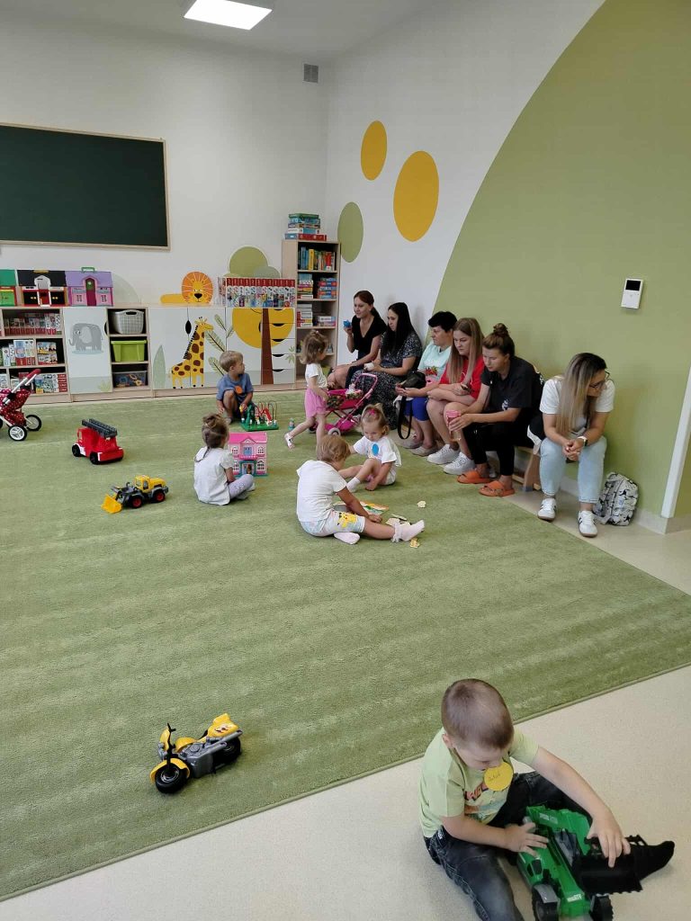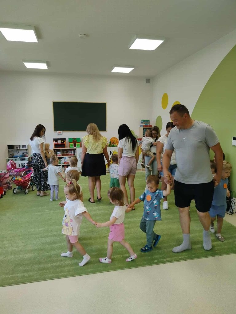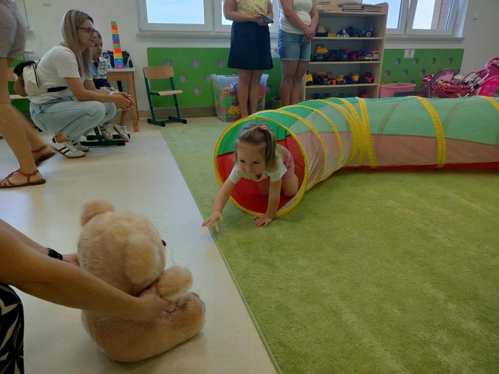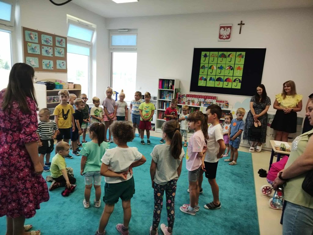 Od samego początku panowała ciepła, przyjazna atmosfera, która sprzyjała nawiązywaniu relacji i integrowaniu nowych osób z naszą społecznością. Pierwszą częścią wydarzenia było zwiedzanie przedszkola. Rodzice mieli możliwość zobaczenia sal, w których na co dzień odbywają się zajęcia. Przedszkole okazało się nie tylko przyjaznym miejscem, ale także przestronnym i w pełni wyposażonym w pomoce dydaktyczne, które sprzyjają wszechstronnemu rozwojowi dzieci. Dzieci natomiast miały szansę pobawić się z rówieśnikami, uczestniczyć w zajęciach dzieci starszych. Widok maluchów, które z radością angażowały się w różne aktywności, był najlepszym dowodem na to, że przedszkole to nie tylko miejsce nauki, ale także przestrzeń do odkrywania pasji i talentów.
