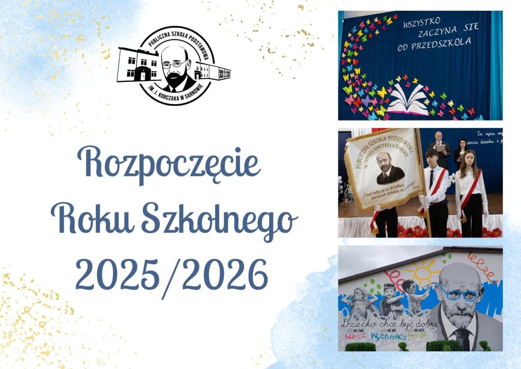 Dyrektor Publicznej Szkoły Podstawowej im. Janusza Korczaka w Sarnowie zaprasza uczniów i rodziców na uroczyste rozpoczęcie nowego roku szkolnego 2025/2026. Rozpoczniemy mszą o godz. 9.00 w Kaplicy. Po mszy uroczysta akademia na sali gimnastycznej, po akademii spotkanie w klasach z wychowawcami.