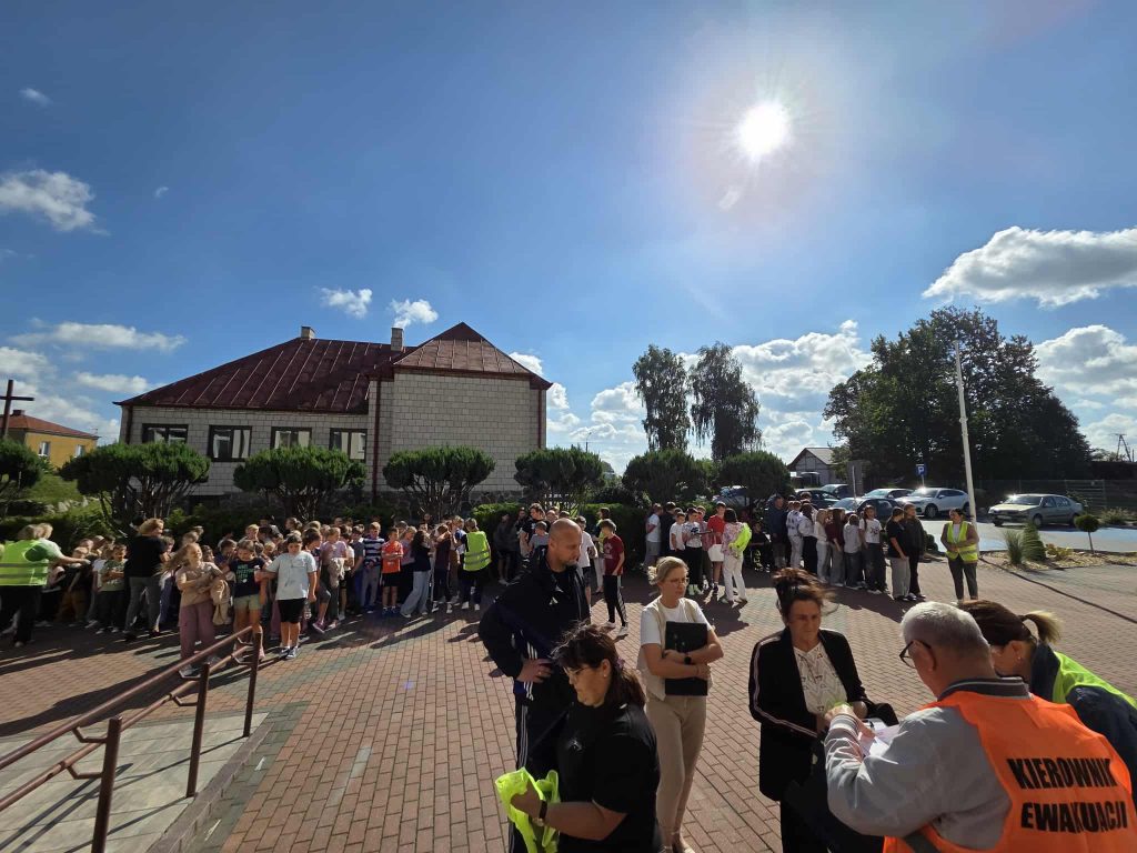 Po usłyszeniu przerywanego sygnału alarmowego wszyscy uczniowie, nauczyciele oraz pracownicy szkoły sprawnie i bez paniki opuścili budynek. Nawet najmłodsi – przedszkolaki – bardzo szybko i zdyscyplinowanie opuścili sale lekcyjne. Cała ewakuacja przebiegła wzorowo i zajęła zaledwie 4 minuty. Na miejscu zbiórki nauczyciele złożyli raporty dyrektorowi szkoły, który pełnił funkcję kierownika ewakuacji.