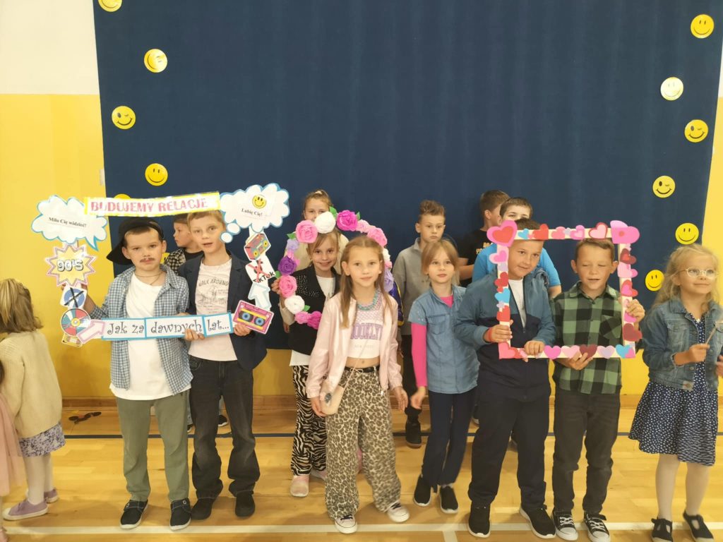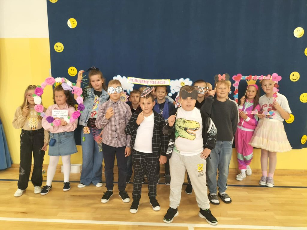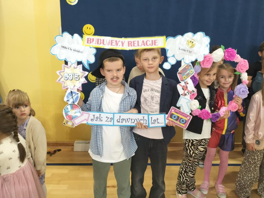 W ramach akcji Ministerstwa Edukacji Narodowej – Tydzień o budowaniu relacji, w naszej szkole odbyła się wyjątkowa dyskoteka pod hasłem „Jak za dawnych lat…”. Podczas wydarzenia uczniowie mogli spędzić czas razem w atmosferze radości, tańca i wspólnej zabawy, nawiązując i pogłębiając relacje rówieśnicze. Zabawa przy muzyce sprzed lat połączyła pokolenia i pokazała, że wspólne spędzanie czasu w bezpiecznym i przyjaznym środowisku wzmacnia więzi i przeciwdziała izolacji. Dyskoteka była nie tylko okazją do integracji, ale również praktycznym przykładem tego, jak ważne są wzajemny szacunek, współpraca i dobra komunikacja. Budowanie pozytywnych relacji jest najlepszą drogą do przeciwdziałania wszelkim formom przemocy.