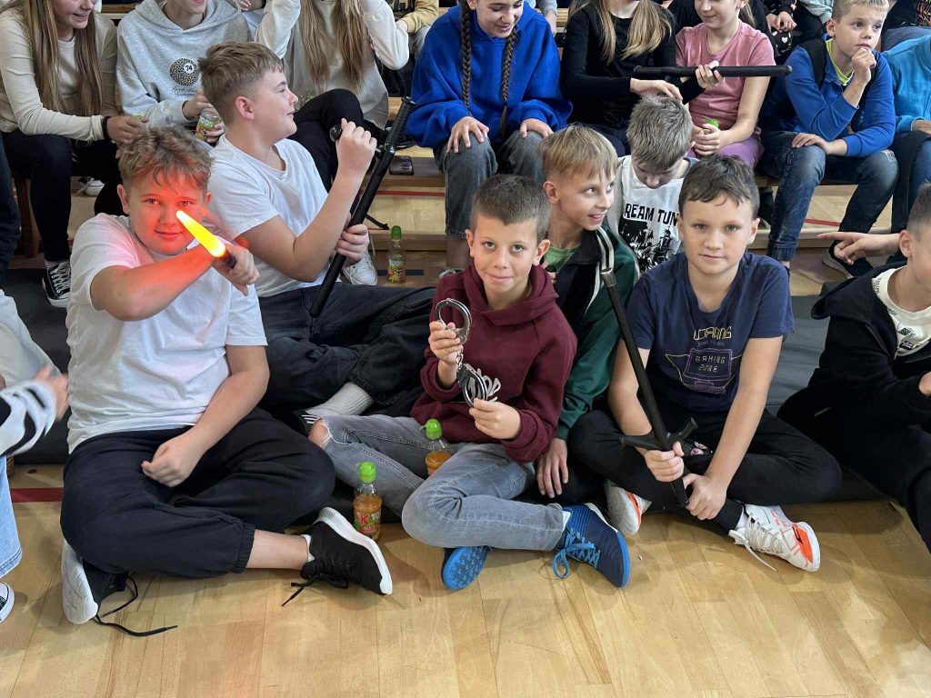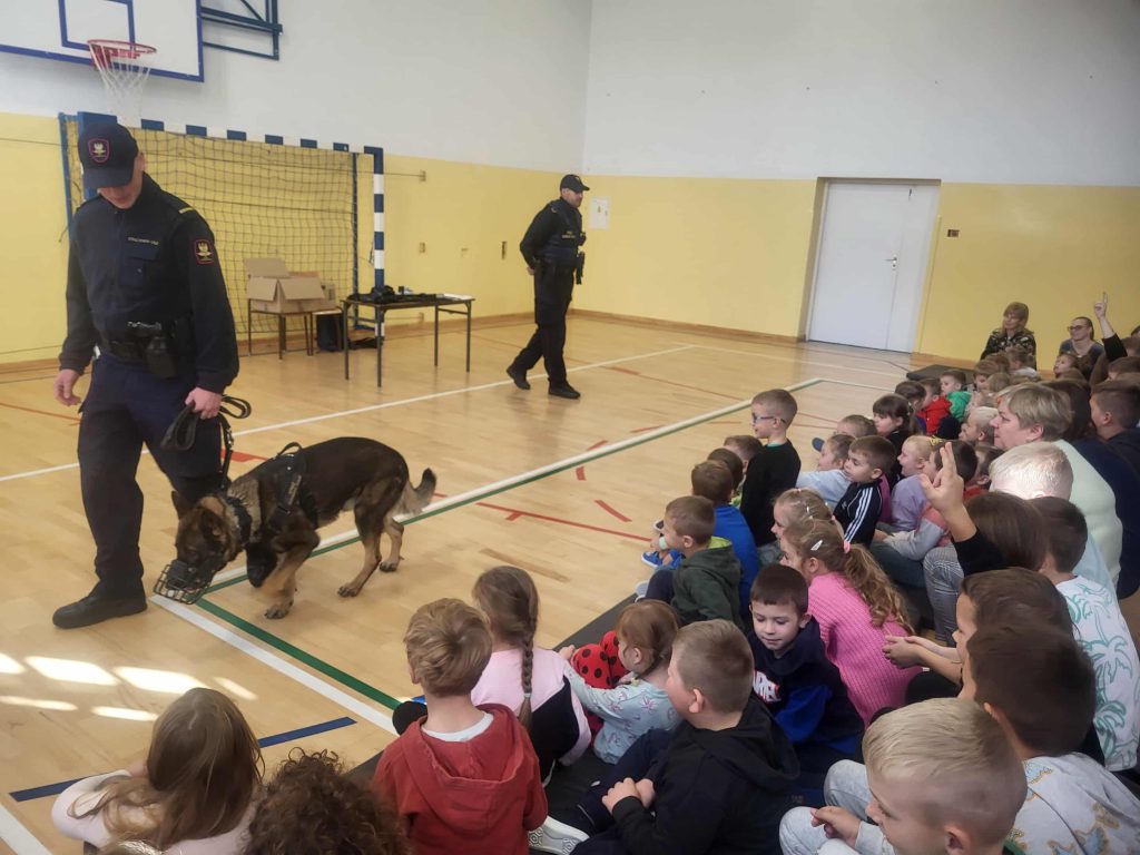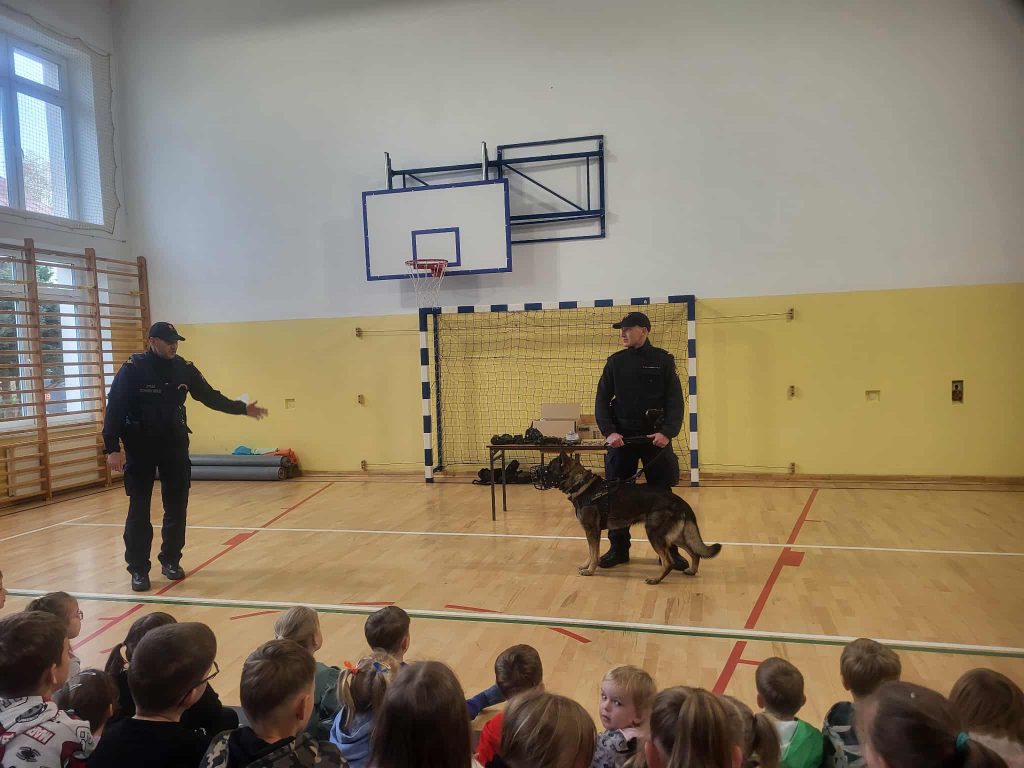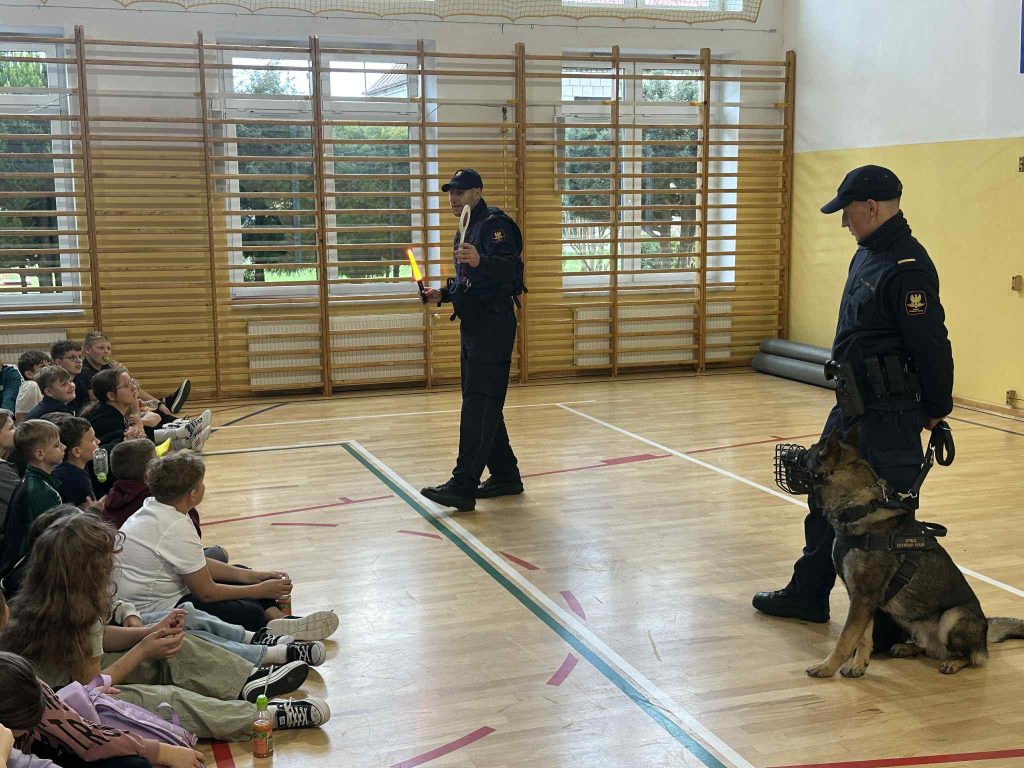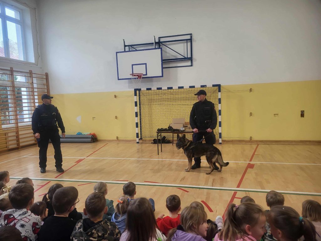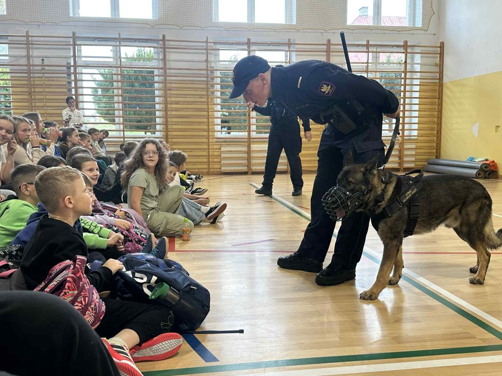 Nie zabrakło też wyjątkowego gościa – psa służbowego o imieniu Echo. Wytresowany czworonóg zaprezentował swoje umiejętności, pokazując, jak potrafi być posłuszny i jak skutecznie broni swojego opiekuna. Dzieci były zachwycone jego pokazem – Echo bez wątpienia skradł całe show!