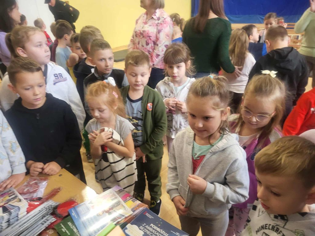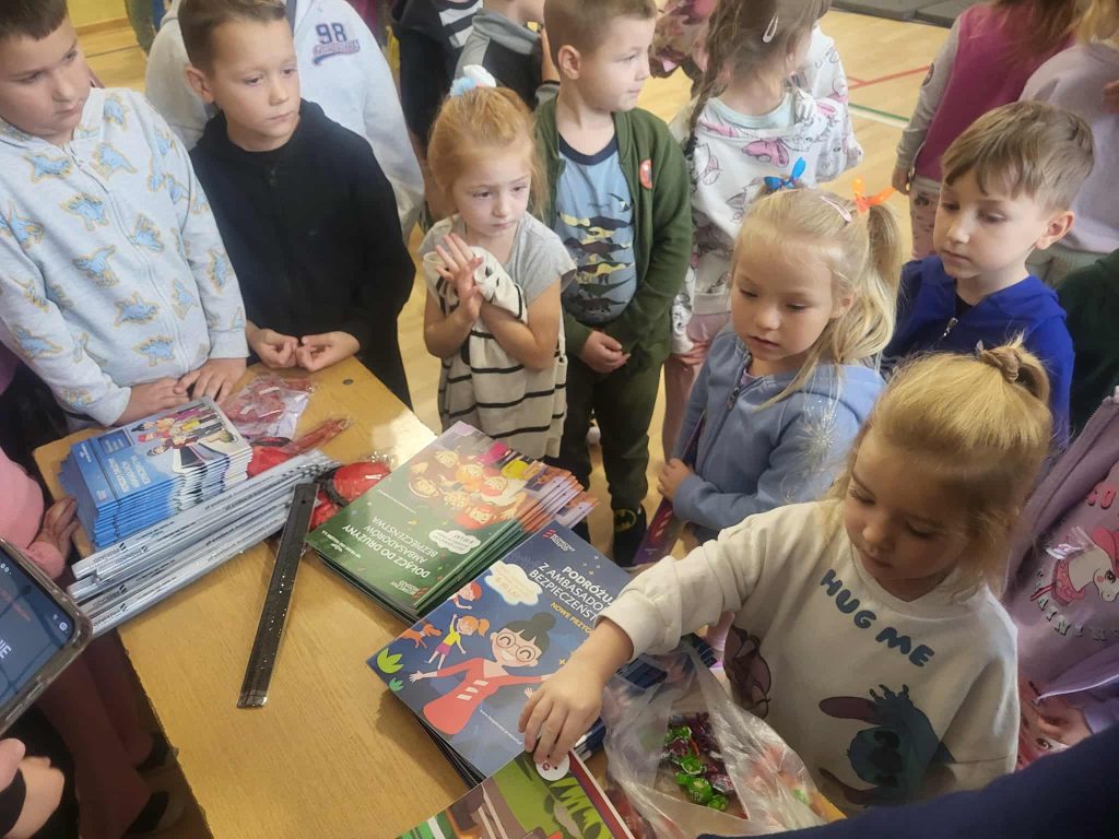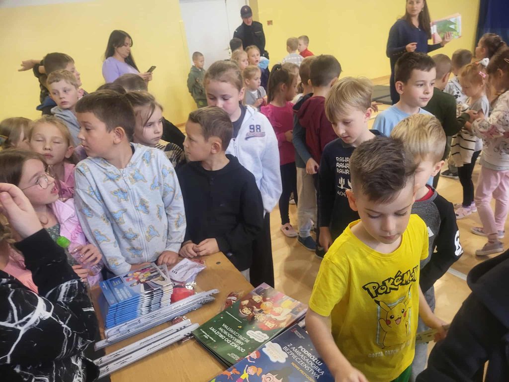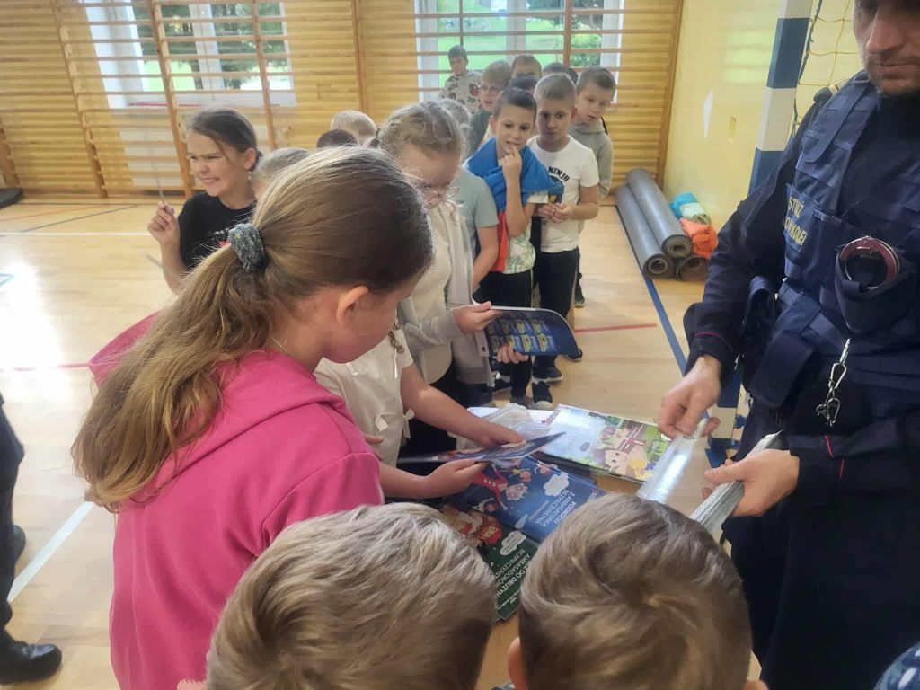 Na zakończenie spotkania funkcjonariusze przekazali uczniom ulotki, odblaski, edukacyjne książeczki oraz słodką niespodziankę. Była to nie tylko cenna lekcja o bezpieczeństwie, ale też inspirujące spotkanie z ciekawym zawodem.