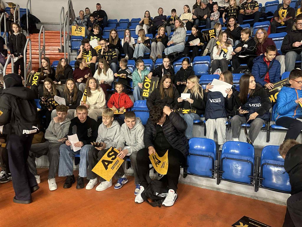 Atmosfera w hali była gorąca od pierwszego gwizdka. Nasi uczniowie, wyposażeni w klubowe gadżety i transparenty, z wielkim zaangażowaniem wspierali gospodarzy, głośno dopingując ich przez całe spotkanie. Nie zabrakło okrzyków, braw i wspólnego śpiewania z innymi kibicami. Choć mecz zakończył się wynikiem 1:3 dla drużyny z Bełchatowa, emocji i sportowej pasji nie brakowało.