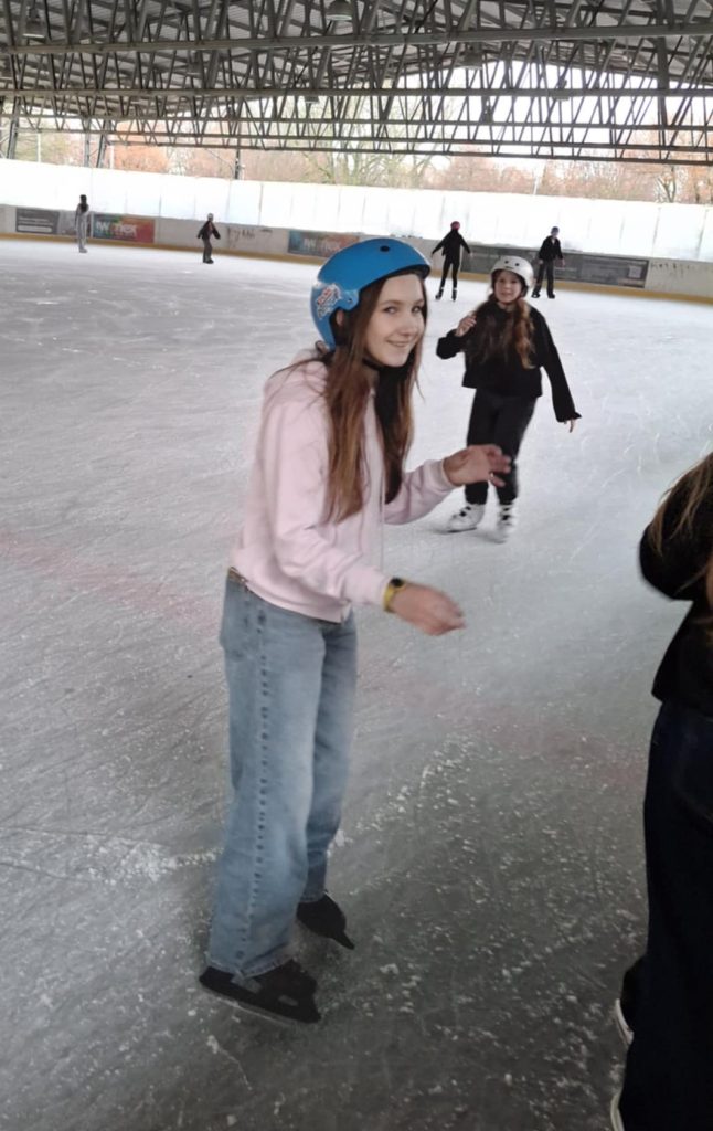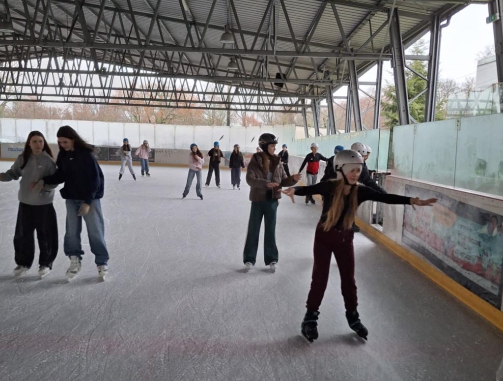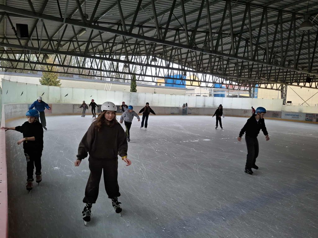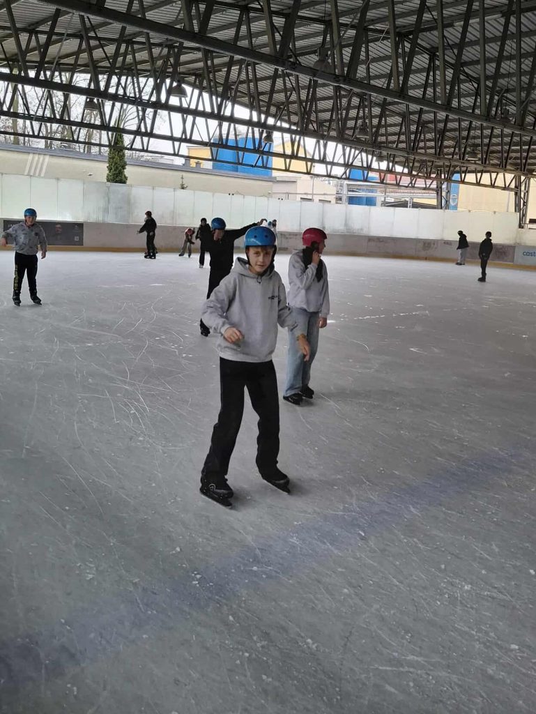 Dzień rozpoczął się na lodowisku, gdzie młodzież z zapałem i uśmiechem na twarzy szlifowała jazdę na łyżwach, a atmosfera była pełna energii i świetnej zabawy.