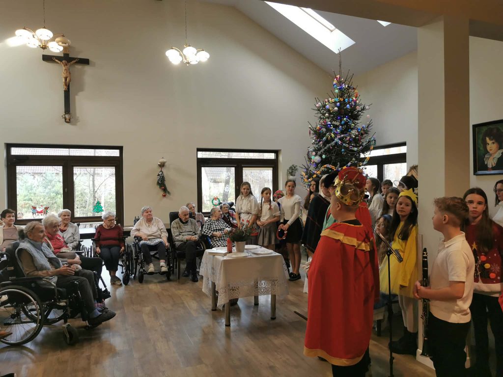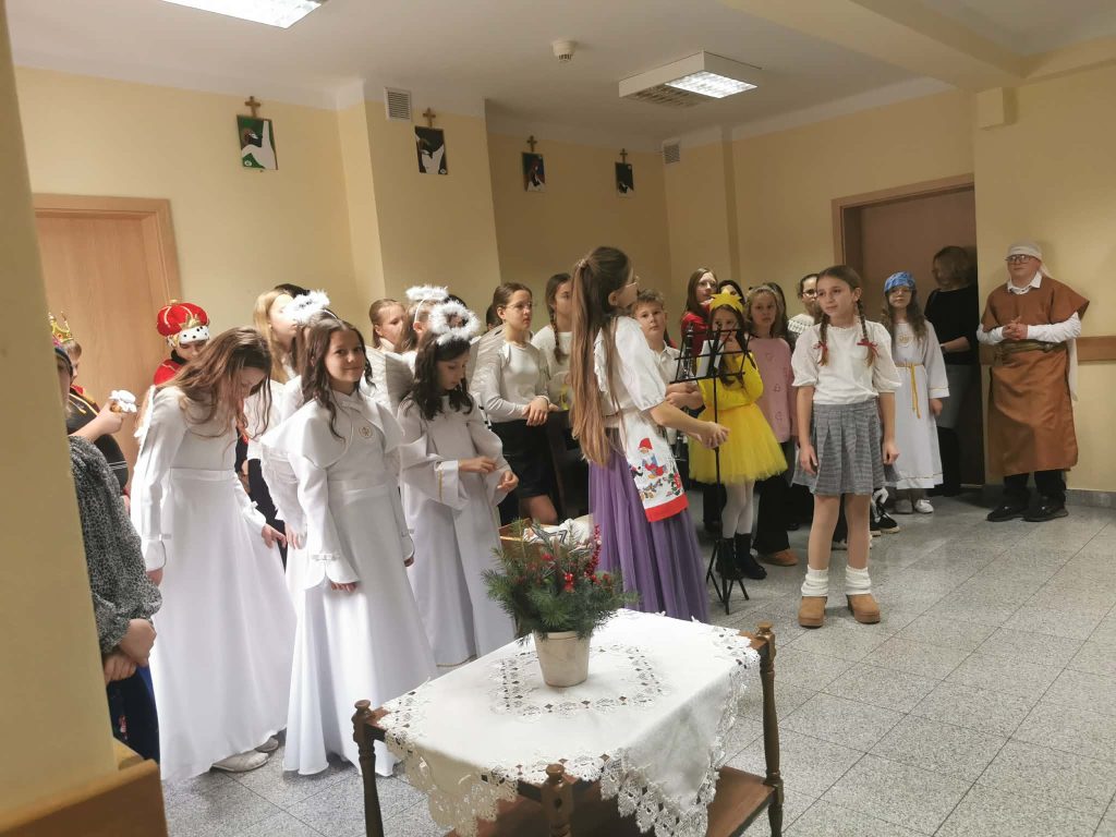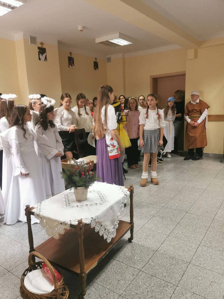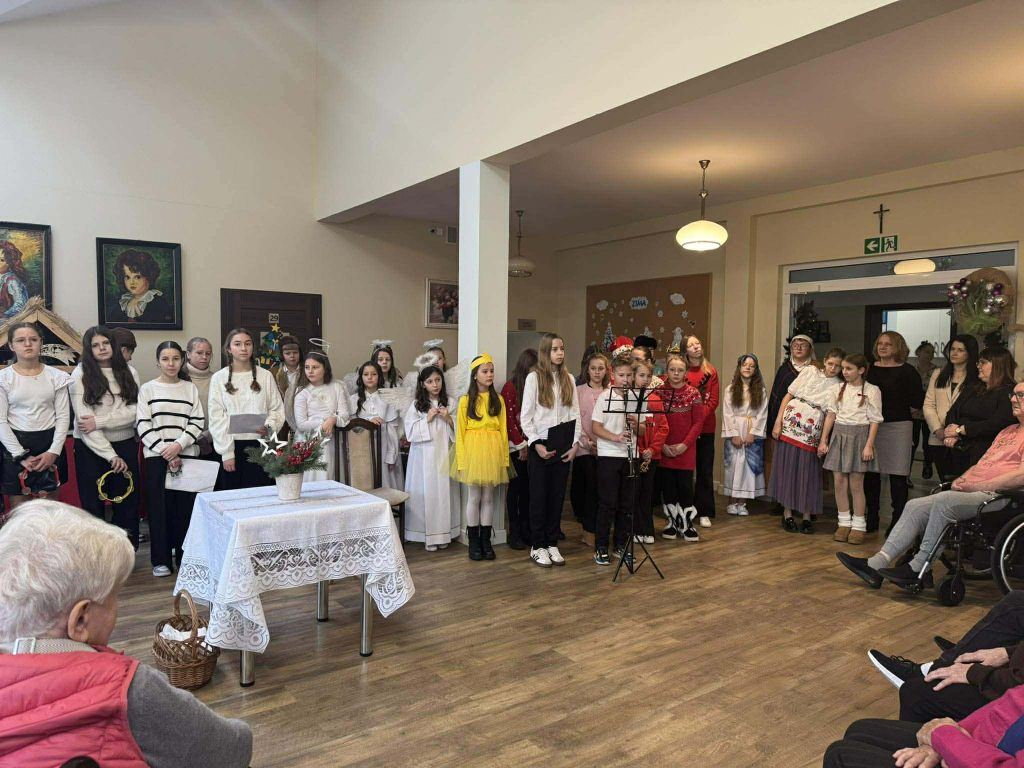 Podczas obu wizyt uczniowie zaprezentowali jasełka, które wprowadziły wszystkich w wyjątkowy, świąteczny nastrój. Spotkaniom towarzyszyły wzruszenie, serdeczność oraz piękna, pełna ciepła atmosfera nadchodzących Świąt Bożego Narodzenia.