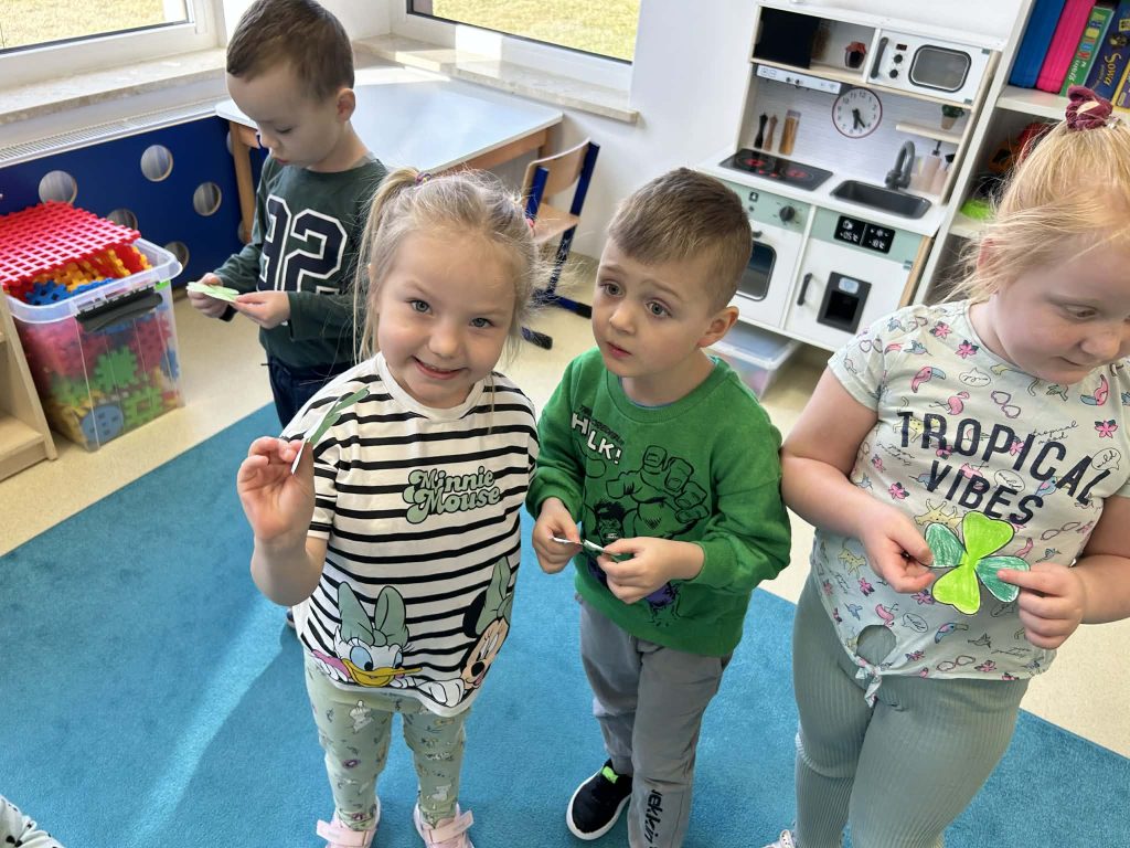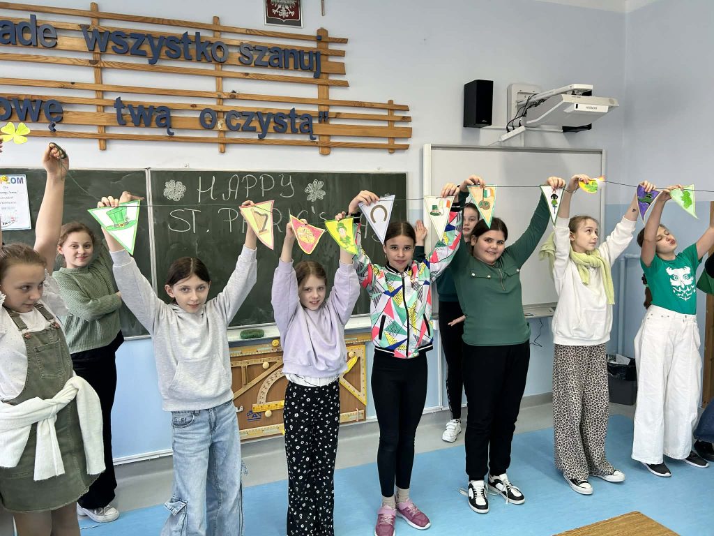 W naszej szkole odbyły się wyjątkowe obchody Dnia Świętego Patryka – patrona Irlandii. Była to doskonała okazja do poznania kultury, tradycji oraz ciekawostek związanych z tym niezwykłym krajem. Podczas zajęć uczniowie dowiedzieli się wielu interesujących informacji o Irlandii – jej symbolach, zwyczajach oraz legendach. Nie zabrakło również działań plastycznych. Dzieci przygotowały koniczynki szczęścia, które są jednym z najbardziej rozpoznawalnych symboli Irlandii. Dużym zainteresowaniem cieszyła się także gra terenowa ze stacjami dydaktycznymi. Uczniowie, rozwiązując różnorodne zadania i zagadki, mogli sprawdzić swoją wiedzę oraz współpracować w zespołach. Uczennice klasy IV przygotowały piękną girlandę z symbolami Irlandii, która ozdobiła szkolny korytarz i wprowadziła wszystkich w zielony, irlandzki klimat. Dodatkową atrakcją była nauka popularnego tańca irlandzkiego, która sprawiła uczniom wiele radości. Obchody Dnia Świętego Patryka były pełne uśmiechu, dobrej zabawy i wspólnego odkrywania kultury Irlandii. Dzięki takim inicjatywom uczniowie mogą rozwijać swoje zainteresowania językowe i poznawać tradycje innych krajów.