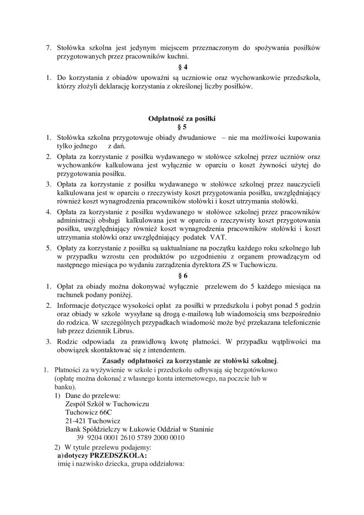 Od 3 listopada obiady do naszej szkoły będą dowożone z ZS w Tuchowiczu. W związku z tym zmieniła się stawka za obiad oraz numer konta do wpłat za wyżywienie.